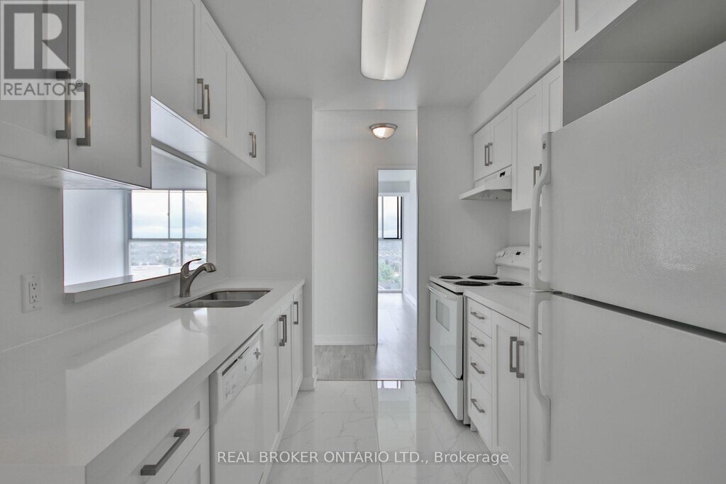 Modern Comfort in the Heart of Mississauga! Welcome to 35 Trailwood Drive a must-see 2-bedroom,2-bathroom suite offering spacious living at its finest! With nearly 1,000 sq. ft. of beautifully designed space,this bright and inviting unit boasts floor-to-ceiling windows that fill every room with natural light and showcase stunning city views. Enjoy newer laminate flooring throughout and an open-concept layout perfect for entertaining the living and dining areas flow seamlessly into a stylish,eat-in kitchen. The primary bedroom features a generous layout with a private 4-piece ensuite,while the second bedroom is ideal for family,guests,or a home office. Perfectly located in the heart of Mississauga,close to shopping,transit,restaurants,and parks this home is perfect for couples,small families,or anyone looking for space and style in a prime location. (id:52069) ID#: 1419657