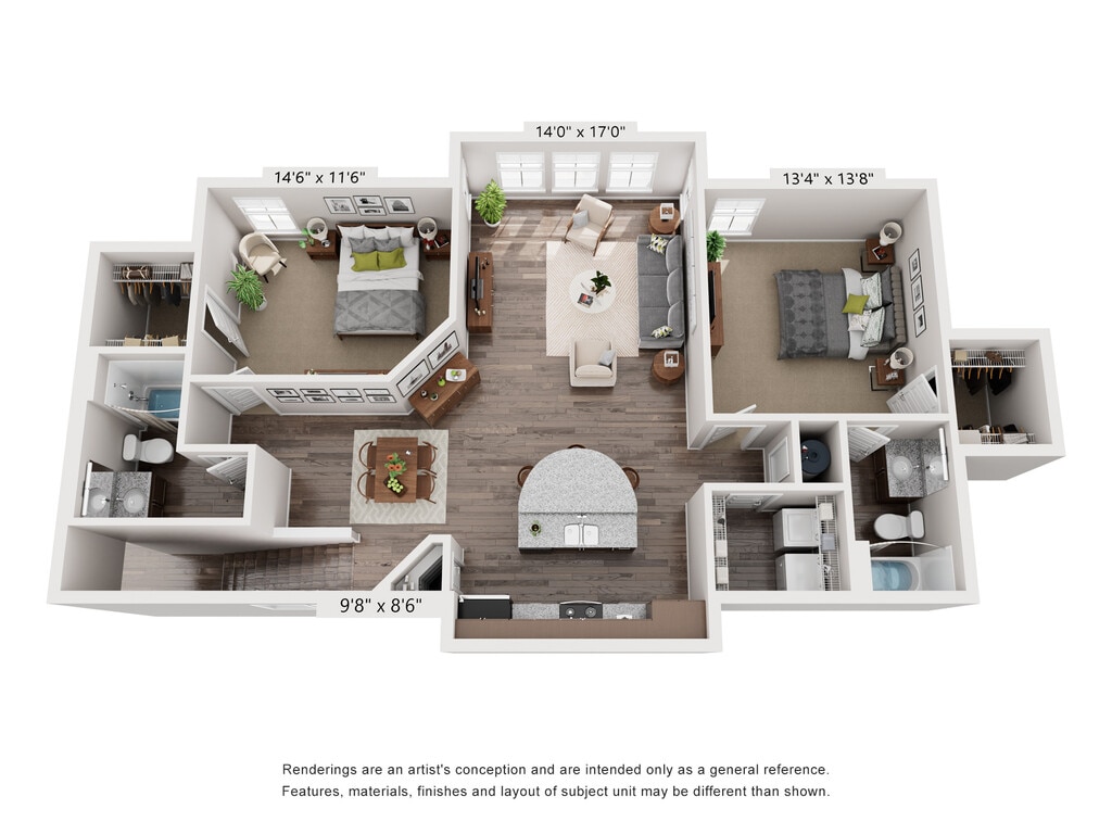 Apartment Model: 35W-a2-TH/Garage$1,5501 Bedroom, 1 Bath, 973 sq ftAvailable December 6, 2025![]()