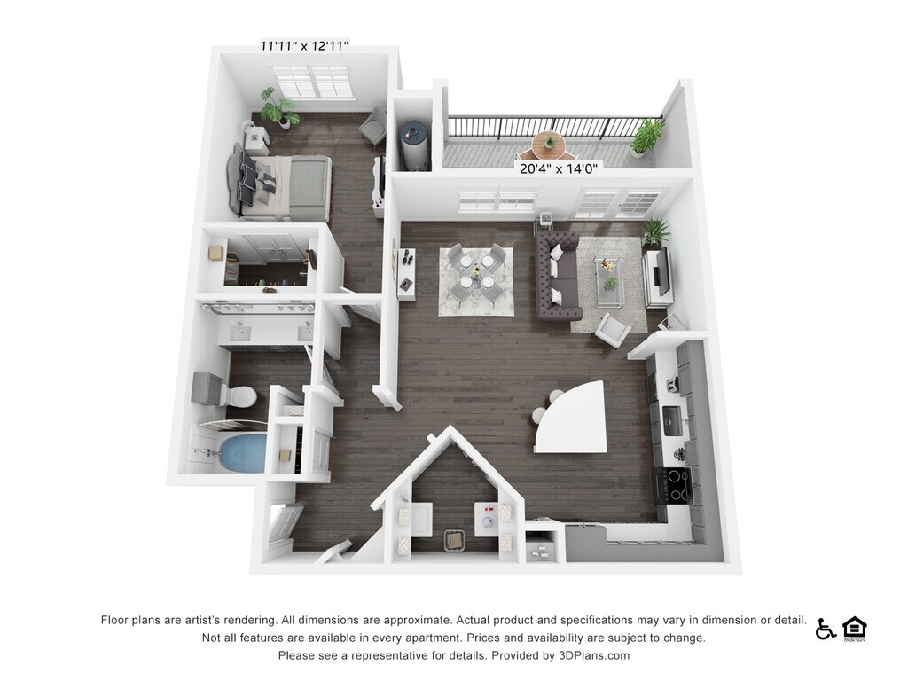 Apartment Model: A4From $2,0421 Bedroom, 1 Bath, 1085 sq ftAvailable December 3, 2025Floor plans are artist's rendering. All dimensions are approximate. Actual product and specifications may vary in dimension or detail. Not all features are available in every rental home. Prices and availability are subject to change. Base rent is based on monthly frequency. Additional fees may apply, such as but not limited to package delivery, trash, water, amenities, etc. Deposits vary. Please see a representative for details.