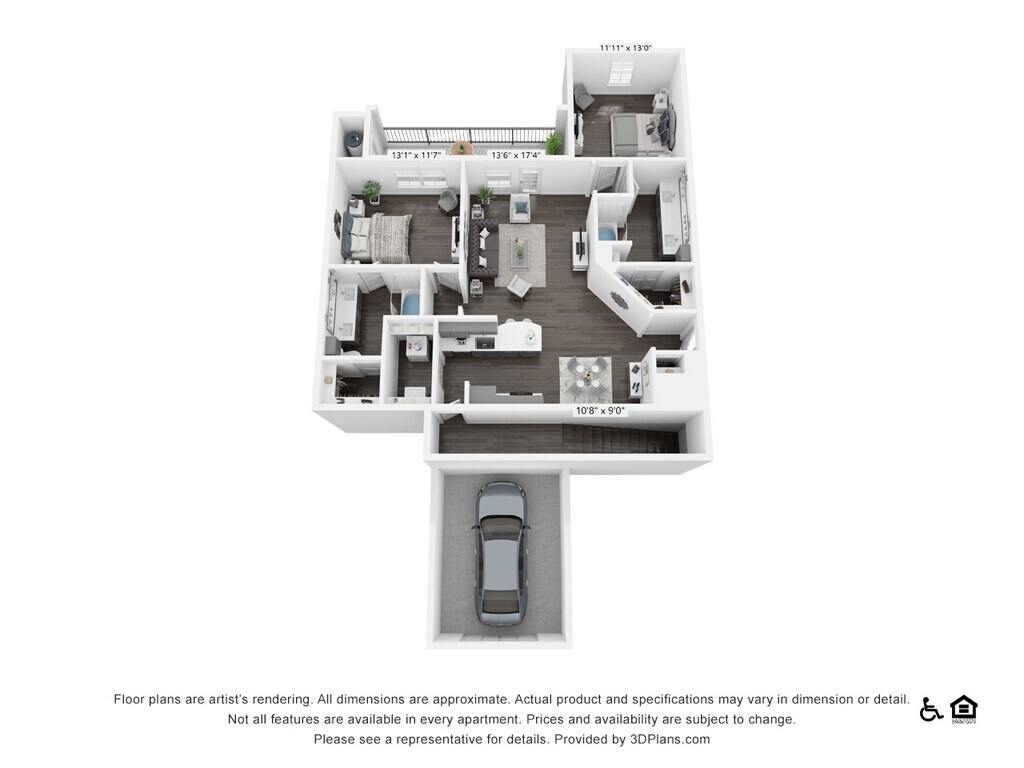 A3 - Floorplan 1 Floor plans are artist's rendering. All dimensions are approximate. Actual product and specifications may vary in dimension or detail. Not all features are available in every rental home. Prices and availability are subject to change. Base rent is based on monthly frequency. Additional fees may apply, such as but not limited to package delivery, trash, water, amenities, etc. Deposits vary. Please see a representative for details.