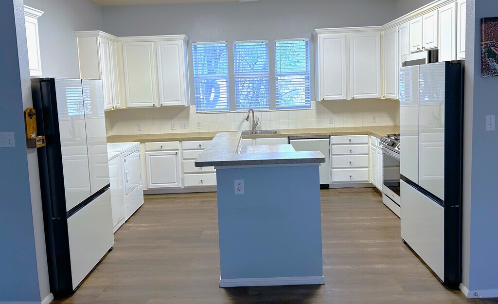 PRE-LEASE 2026-2027 Maps Street View is incorrect, the houses are on the corner of Duval and 35th. NOTE: This is a House, there are only 2 houses on the property. They have an adjoined deck and share the exterior stairs but no shared walls. This home has 2 very large garages and a separate driveway. Unfortunately, it gets classified as a "townhouse" but more accurately is a house. All New High-end Samsung Bespoke Glass Fronted Appliances, installed January 2023 3 REFRIGERATORS: 2 large 30 cu.ft. NEW refrigerators in Kitchen, and also an additional one in garage. Equally sized large bedrooms & bathrooms Flat Screen TV in main living room Full sized washer & dryer in unit Quiet Neighborhood, yet still really close to campus. 3rd floor Deck plus BBQ area Outdoor space with trees & lawn, possible vegetable garden? Fence and gazebo coming soon! 2-minute drive to campus, less than 10 minute bike ride, Campus shuttle & bus stop a few steps from home, direct to campus! Owner managed, flexible, easy communication and fast responses. Excellent ratings from past residents. Any questions. Feel free to ask! ALL NEW APPLIANCES: 2 In Kitchen Samsung Bespoke 30 cu. ft. 3-Door French Door Smart Refrigerator with Beverage Center in White Glass Samsung Bespoke 30 in. 2.1 cu. ft. Over the Range Microwave in White Glass with Sensor Cooking Samsung Bespoke 24 in White Glass Top Control Smart Built-In Tall Tub Dishwasher with Stainless Steel Tub, 42dBA - VERY QUIET! Samsung Bespoke 6 cu. ft. 5-Burner Smart Slide-In Gas Range with Self-Cleaning Convection Oven and Air Fry in White Glass New AC Units, Water Heaters, & Disposal