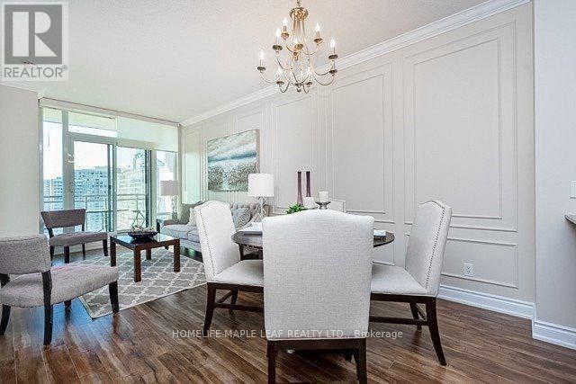 1+1 suite,where the den has been thoughtfully converted into a spacious second bedroom Luxury Urban Living in the Heart of Mississauga! Experience sophistication and style in this meticulously upgraded enhanced functionality without compromising design. The sun-filled open-concept living and dining area is adorned with custom wainscoting,elegant crown moulding,upgraded laminate flooring,and fresh designer paint. Enjoy 9-ft smooth ceilings and floor-to-ceiling windows that create an airy,light-filled ambiance. The gourmet kitchen features granite countertops,a sleek backsplash,and premium stainless steel appliances-perfect for both everyday living and entertaining. The primary bedroom offers a walk-in closet and serene retreat-like comfort. This residence also includes ensuite laundry,modern finishes throughout,and access to world-class building amenities. Ideally located steps to Square One,Sheridan College,fine dining,parks,and transit,with seamless access to Highways 403,401,and QEW. Luxury,location,and lifestyle-this condo has it all. (id:52069) ID#: 2078457
