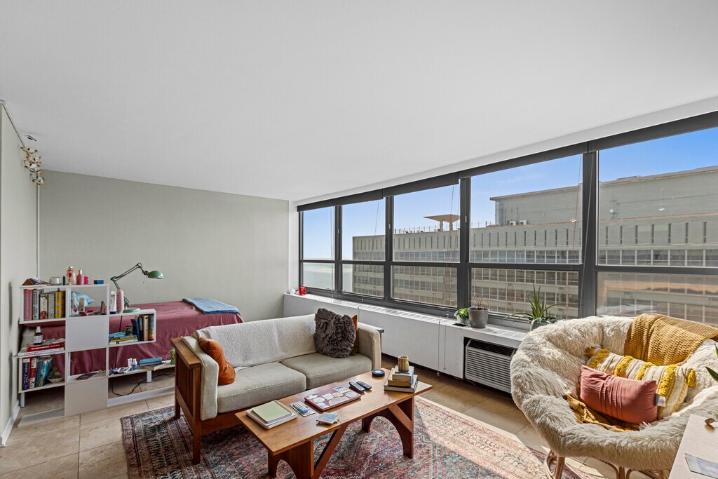 Welcome to 3550 N Lake Shore Drive an iconic, full-amenity building in one of Chicago's most desirable neighborhoods. This bright oversized penthouse studio features wall-to-wall windows that let in abundant natural light and offer calming views of the lake and surrounding cityscape. Bring your couch and bed- plenty of room for both! Kitchen features include stainless steel appliances and plenty of cabinets. All utilities but electric and internet included. Building amenities include 24-hour door staff, updated hallways, two rooftop sundecks with breathtaking lake and skyline views, a fitness center, library, dry cleaners, commissary, bike storage, two laundry rooms, and on-site management and maintenance. Valet garage parking is also available. Just steps from Lake Michigan, the lakefront trail, Belmont Harbor, Wrigley Field, and an endless array of restaurants, cafes, and shops, this unbeatable location offers the perfect balance of city life and lakeside serenity. Commuting is easy with quick access to express buses, trains, and Lake Shore Drive. Living in East Lakeview means investing in one of Chicago's most vibrant and desirable neighborhoods, where classic charm meets modern convenience. If you are looking to enjoy the best of city living near the lake, this is a can't-miss opportunity.