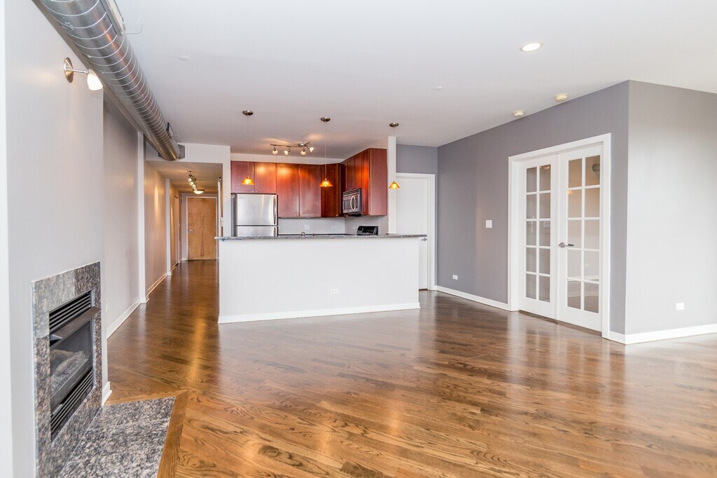 This top floor 2-bed/2-bath corner condo in elevator building! The incredible views of the loop skyline highlight this beautiful modern condo in the heart of Albany Park. The large east and south facing windows flood the huge living/dining space with natural light! Enjoy cozy evenings by the fireplace. The modern kitchen features a breakfast bar and 42" cabinets, stainless steel appliances, and granite countertops. Come see the huge primary en-suite bedroom that boasts a bathroom with double vanity and oversized spa shower. Hardwood floors throughout, in-unit washer/dryer, large outdoor patio, heated garage parking included! Well maintained and professionally managed building, less then a mile to the Kimball Brown Line, quick access to the Kennedy Expressway. Walk to bars, restaurants, and entertainment!