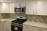 RENOVATED beautiful two-story townhouse style apartment in the City of Burbank! Freshly painted with attention to detail in a quiet 10 Unit building, originally built as a condominium. DOWNSTAIRS: Kitchen with breakfast nook, living room and dining room *Ceramic flooring throughout *Spacious kitchen includes beautiful cabinets and white quartz counters. Appliances include stove, built-in microwave and dishwasher *Recessed lighting throughout *Sliding door leads from living room to a balcony UPSTAIRS: Two spacious bedrooms with vaulted ceilings, two baths, plenty of closet space *Wood flooring throughout *Both bathrooms completely renovated, with tiles and sliding glass doors *Washer/dryer hookup for tenant to bring own washer/dryer *Very spacious attic for storage OTHER HIGHLIGHTS: *Central air conditioning and heat *Vaulted ceilings in both bedrooms *Ceiling fans in bedrooms and dining area *Subterranean assigned side-by-side parking spaces for two vehicles *Gated building with intercom access for visitors * Brand new water heater in unit Centralized location in Burbank, within walking distance to the Burbank Town Center.?Downtown Burbank offers plenty of shopping, entertainment and fine dining just a few blocks away. Enjoy trouble free access to the I-5 Freeway.