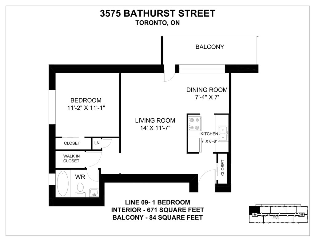 3575 Bathurst St offers 1 Bedroom apartments starting from $1,882 and having 684–689 sq ft. Here is the current pricing and availability: