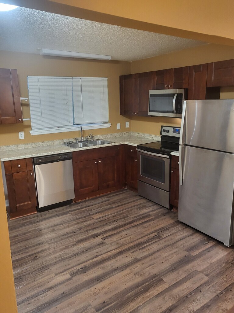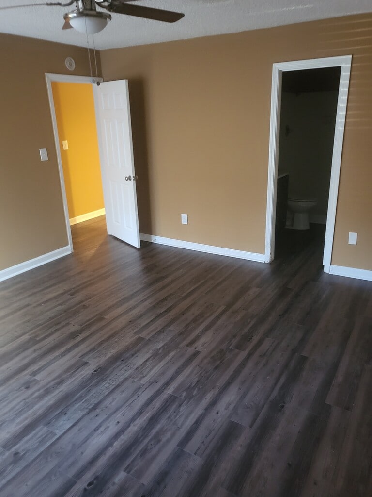Two bedroom two bath apartment, tile floors in bathroom and laminate floors throughout, new energy efficient windows, ceiling fans in bedrooms, living, dining and a patio with French doors off living room. Central heat and ac. Security door at entrance. Unit is fully electric. Close to I-285 and I-20. Within 30 minutes of Atlanta or Hartfield Jackson Airport. Elementary school across the street. $1,250 per month.