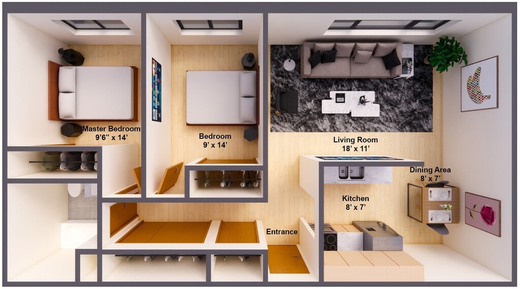 2 Beds, 1 Bath, 655 sq ftAvailable NowModel Gallery