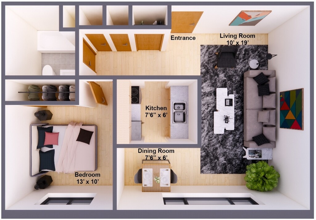 359 Edison - 1 Bedroom, 1 Bathroom Type B - Floorplan 1 Apartment Unit: 204Apartment Model: 359 Edison - 1 Bedroom, 1 Bathroom Type B1 Bedroom, 1 Bath, 525 sq ftAvailable April 1, 20262 Bedrooms