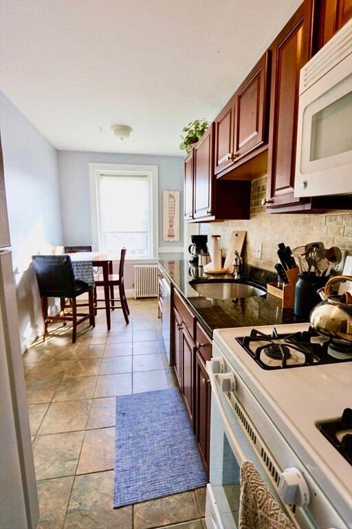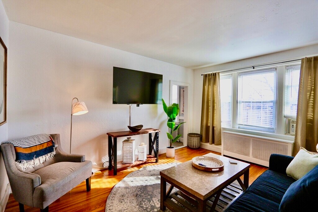 This sunny, quiet, top floor unit includes an hardwood floors, granite/stainless kitchen. The bedroom hosts a queen sized bed and the living room offers a futon that pulls out to a full sized bed. Both the living area and bedroom have AC units and there are laundry and storage in the basement. Just a short walk to restaurants, shops, cafes, MBTA Red Line trains