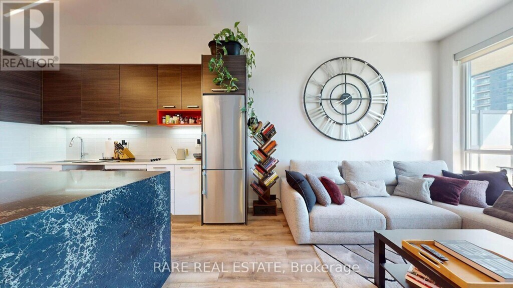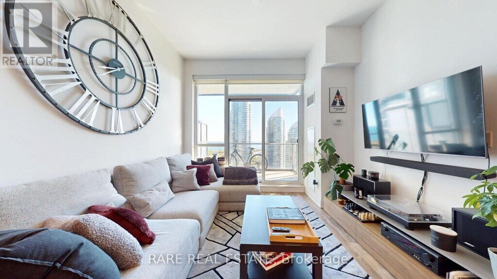 Welcome to 2102 at 36 Park Lawn Rd,Where Style Meets Sophistication. This stunning 1-bedroom + den,1-bath suite offers refined urban living with rare 10-foot ceilings and breathtaking lake views. The open-concept kitchen features a luxurious custom waterfall island with built-in storage,complemented by new modern light fixtures that add warmth and elegance throughout. The spacious bedroom includes a custom closet storage system,while the versatile den offers the perfect space for a home office or guest area. Enjoy relaxing in the bright living room,a TV and media unit can be included for your convenience. Located in one of Etobicoke's most sought-after communities,this unit combines design,comfort,and functionality. Parking may be excluded for a $75 discount. (id:52069) ID#: 2091285