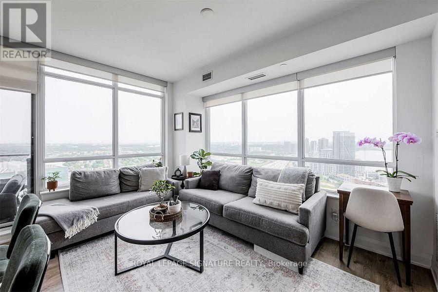 Bright And Modern 1-Bedroom + Den Corner Suite In The Heart Of Humber Bay Shores. This 640 Sq. Ft. Layout Features High Ceilings,Expansive Windows,And An Open-Concept Living And Kitchen Area With A Centre Island,Quartz Countertops,And Stainless Steel Appliances-Great For Everyday Living And Entertaining. The Den Offers A Functional Space For A Home Office Or Additional Storage. Located On The 34th Floor,The Suite Showcases Impressive City And Lake Views. Steps From Groceries,LCBO,Cafes,Restaurants,Transit,And The Waterfront Trail,Offering Convenience And Vibrant Lakeside Living. Amenities: 24 Hr Concierge,Gym,Guest Suites,Outdoor Dining Area,Media Lounge & More! Convenient Access To Downtown Toronto,TTC & GO. (id:52069) ID#: 2102654