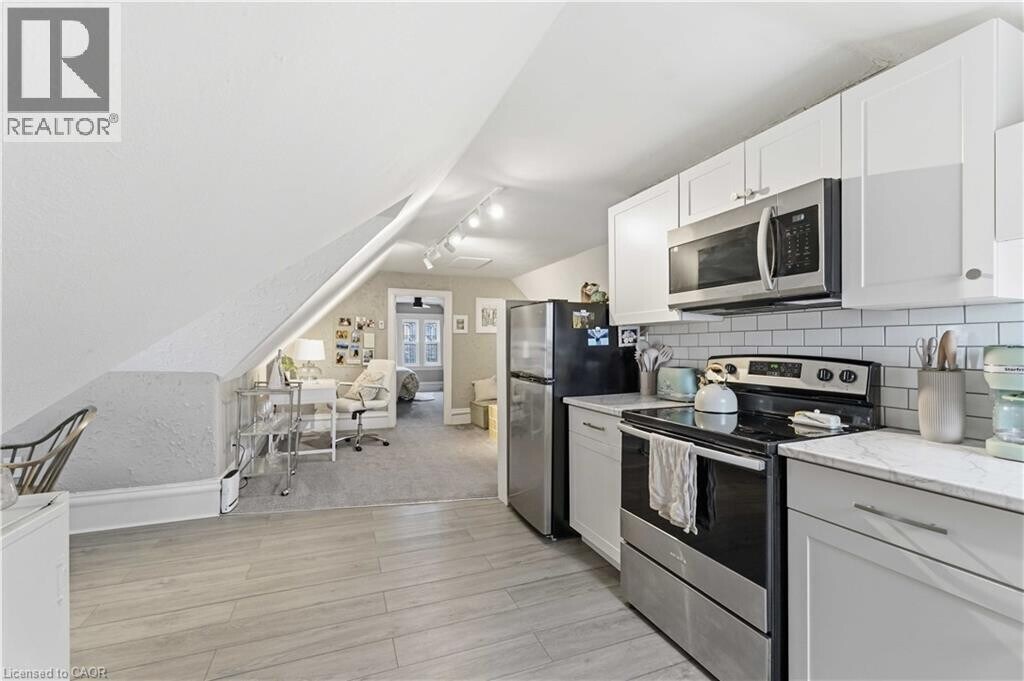 Bright and spacious updated one bedroom apartment on the third floor of well cared for multi res property. Updated kitchen,newer appliances (2024),fresh carpeting,renovated bathroom. Beautiful leaded glass window in the bedroom. No central air,parking for 1 at rear. Off Locke street offering easy access to restaurants,shoppes,many amenities and GO/403 access. First and last required,credit check,and employment verification. Tenant to Pay Hydro. (id:52069) ID#: 1963756