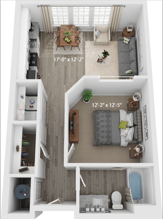 1 Bed, 1 Bath, 635 sq ftAvailable NowModel Gallery