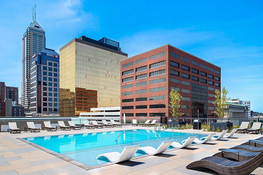 Luxury hits new heights! On the site of the former iconic Market Square Arena, 360 Market Square has risen on the same hallowed ground to become a 28-story mixed-use development. Featuring 292 luxury studio, one and two bedroom apartments. 360 Market Square also includes a 40,000 square foot Whole Foods Market™, and a 525-space parking garage.