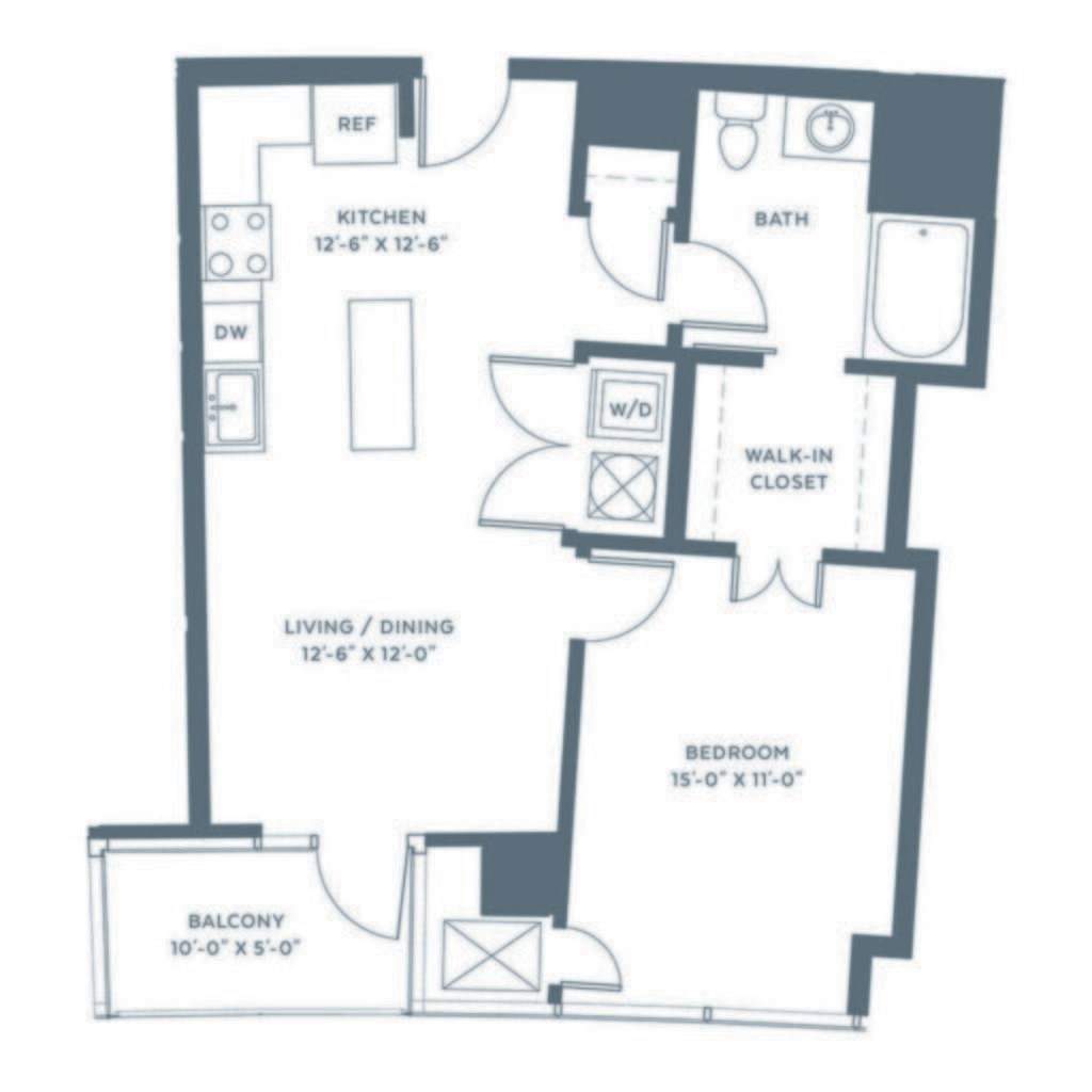 Apartment Model: S-1$1,690Studio, 1 Bath, 570-577 sq ftUnavailableS-1 - Floorplan 1 1 Bedroom