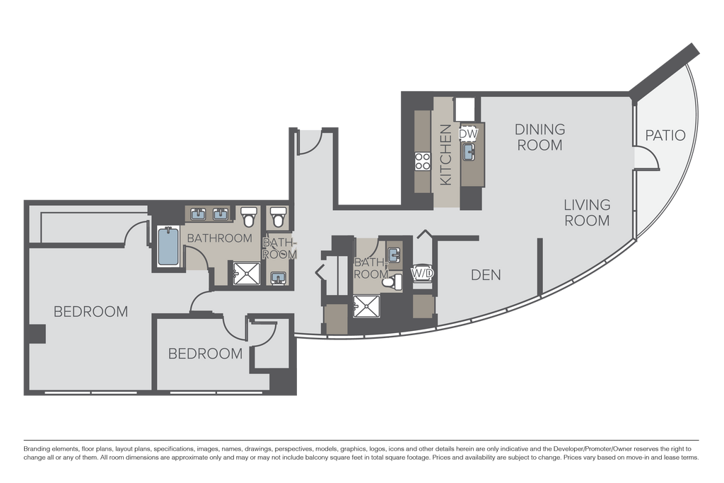 360 Residences offers 1 to 2 Bedroom apartments starting from $3,029 and having 817–1,825 sq ft. Here is the current pricing and availability: