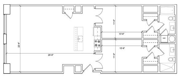 2x2 - Floorplan 1 2 Beds, 2 baths
