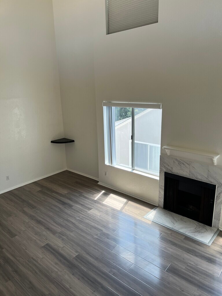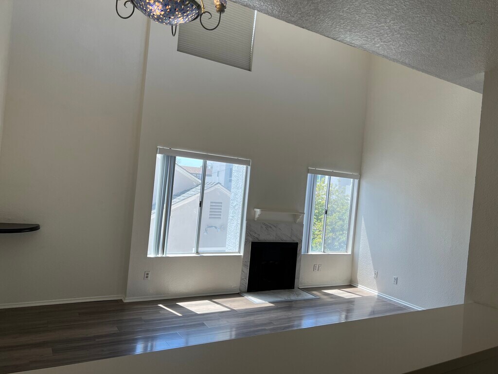 Enormous 3-story, 2-BR / 1.5-BA Unit with Loft (second bedroom), large Private Rooftop Patio, Fireplace, 20-foot High Ceilings, and available Garage Parking Spots in 5-unit building. Unique unit with extremely large master bedroom and full bathroom with bathtub/shower on first floor. New kitchen and bathroom cabinets with quartz countertops, fireplace, 3 large closets with sliding mirrored doors, and glass sliding door from bedroom to rooftop patio.