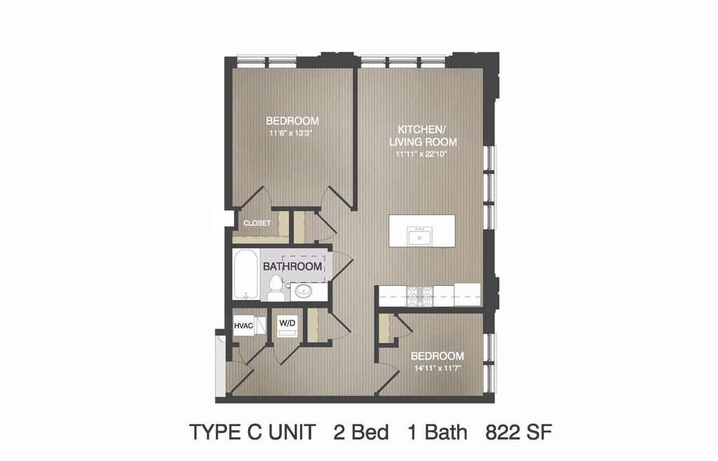 2 Beds, 1 Bath, 827 sq ftModel Gallery