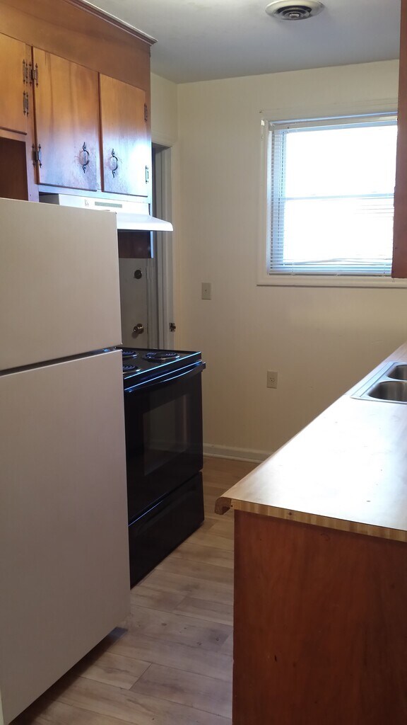 House was refurbished in 2023 with new floors, new energy efficient tilt-in windows, new cabinets and refrigerator, new storm door, new bathroom vanity and toilets, new interior doors, new programmable thermostat! Full size laundry room for your machines. Fenced back yard. Driveway parking.