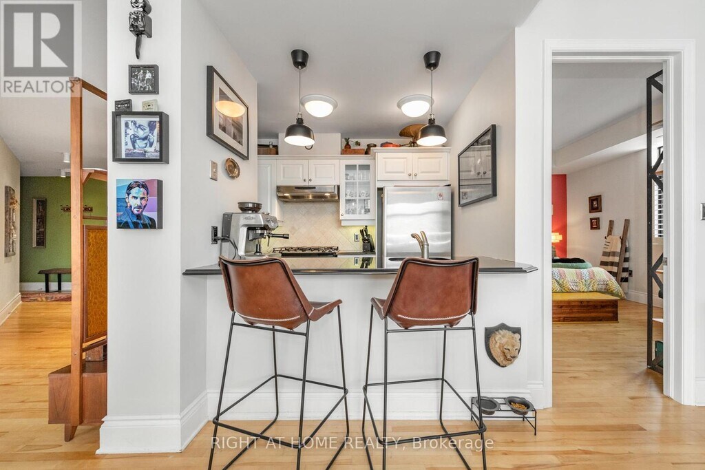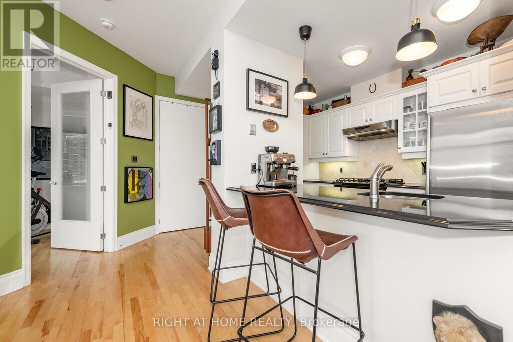 Bright,beautiful,and spacious,this open-concept 2-bedroom condo is ideally located near the vibrant Somerset restaurant district. This south-facing unit is bathed in natural sunlight year-round,which you can enjoy from the large balcony offering stunning city views. The well-appointed kitchen features granite countertops,stainless steel appliances,a gas stove,and ample cabinetry all enhanced by an abundance of natural light. A cozy gas fireplace anchors the main living area,which is flooded with light from floor-to-ceiling windows and expansive sliding patio doors. Soaring 9-foot ceilings throughout add to the sense of space and airiness. The main bathroom includes cheater access to the generously sized primary bedroom,which boasts two double closets. The second bedroom is perfect as a guest room,den,or home office. Elegant frosted glass doors accent the bedrooms and bathroom,and rich maple hardwood floors run throughout the unit. Additional conveniences include one parking space and a storage unit located on the main floor. (id:52069) ID#: 1403625