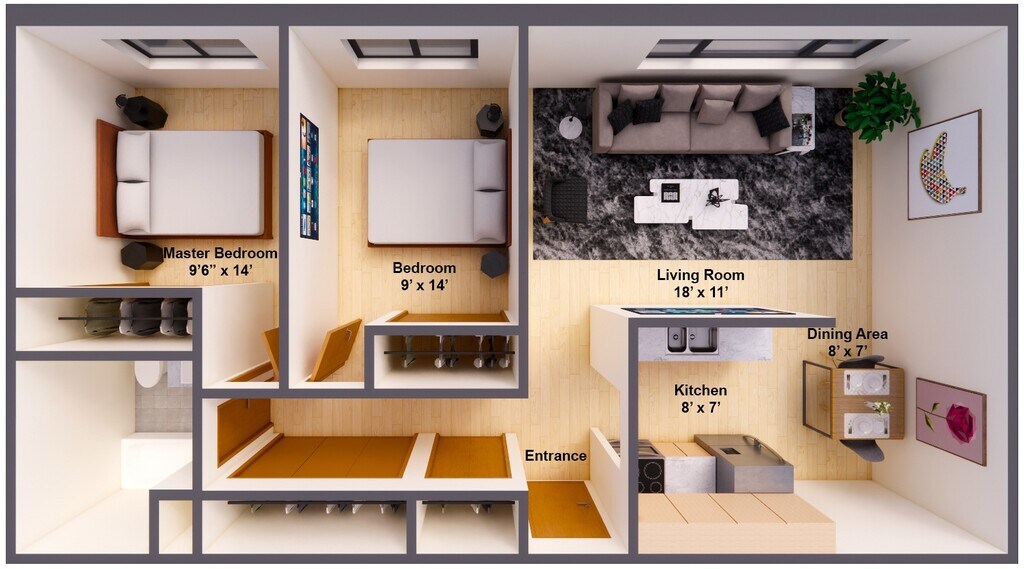 2 Beds, 1 Bath, 655 sq ftAvailable Dec 1Model Gallery