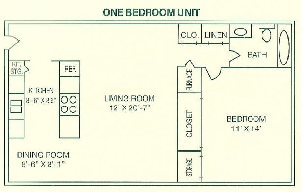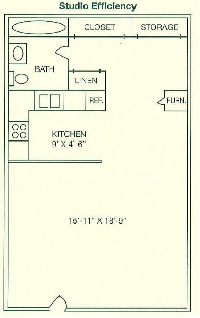 Studio, 1 bath - Floorplan 1 1 Bedroom