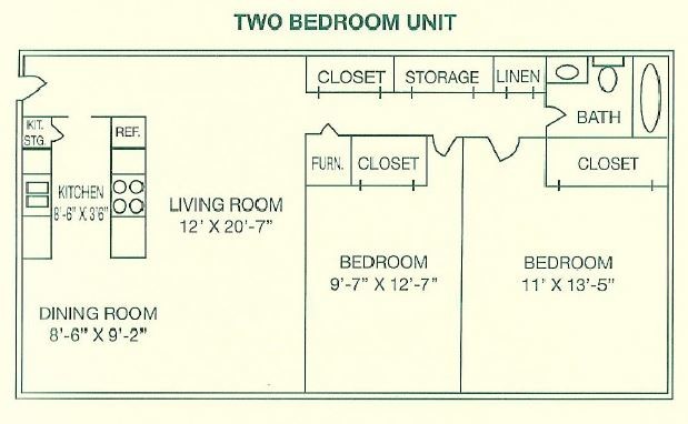 1 Bed, 1 bath - Floorplan 1 2 Bedrooms