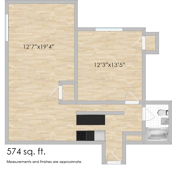 Apartment Model: 37 Rockford StudioStudio, 1 Bath, 450 sq ftUnavailable![]()