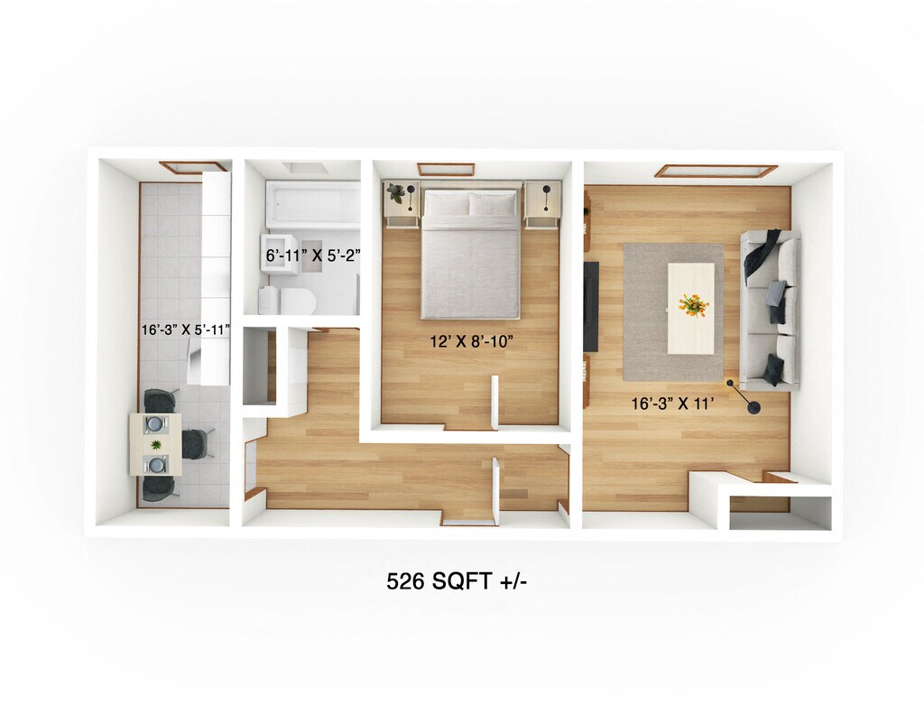 1 Bed, 1 Bath, 530 sq ftAvailable NowModel Gallery