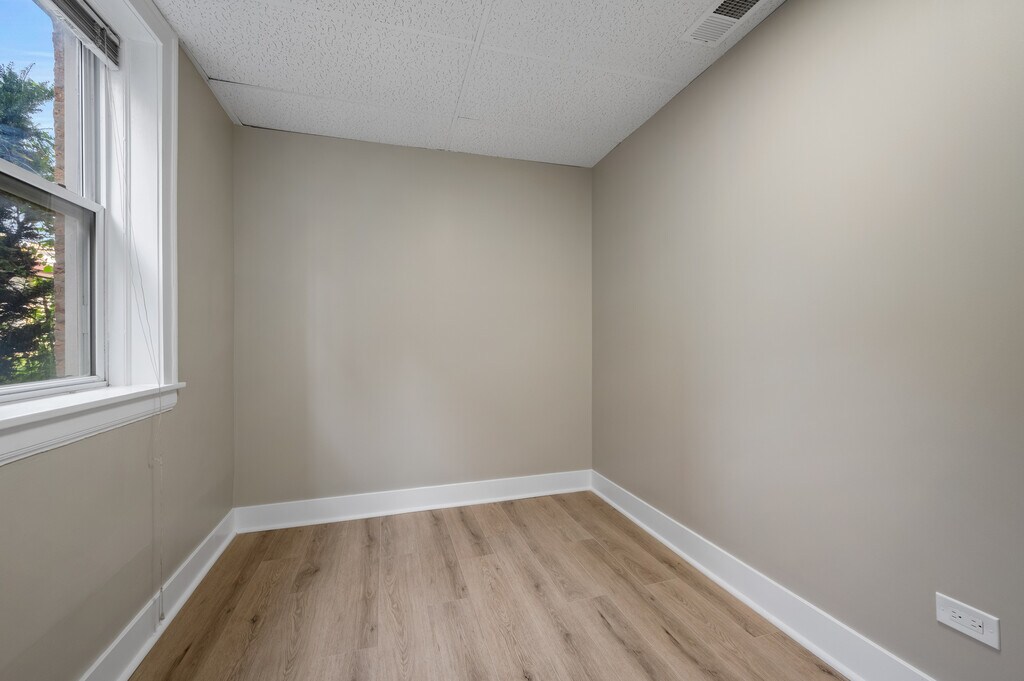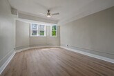 Beautifully remodeled garden apartment with central heat and air. This spacious 2-bedroom, 1-bath home features a brand-new kitchen with quartz countertops and new stainless steel appliances, including a dishwasher, refrigerator, gas stove, and microwave. The unit has been freshly painted and includes beautiful new luxury vinyl flooring throughout. The bathroom offers a tub, pedestal sink, porcelain tile, and modern fixtures. The large living room features 9-foot ceilings and is bright and sunny. The building offers a shared coin-operated laundry room. Walk to brown line (1/2 mile). North Park University (1.5miles) or Northeastern Ill. University (1.3miles). Tenant pays electric and gas (approx $100/mo total) Pet policy is negotiable - case by case. There is a pet fee of $150/per pet. One time management fee of $600.