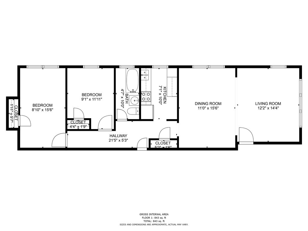 2 Beds, 1 Bath, 843 sq ftModel Gallery