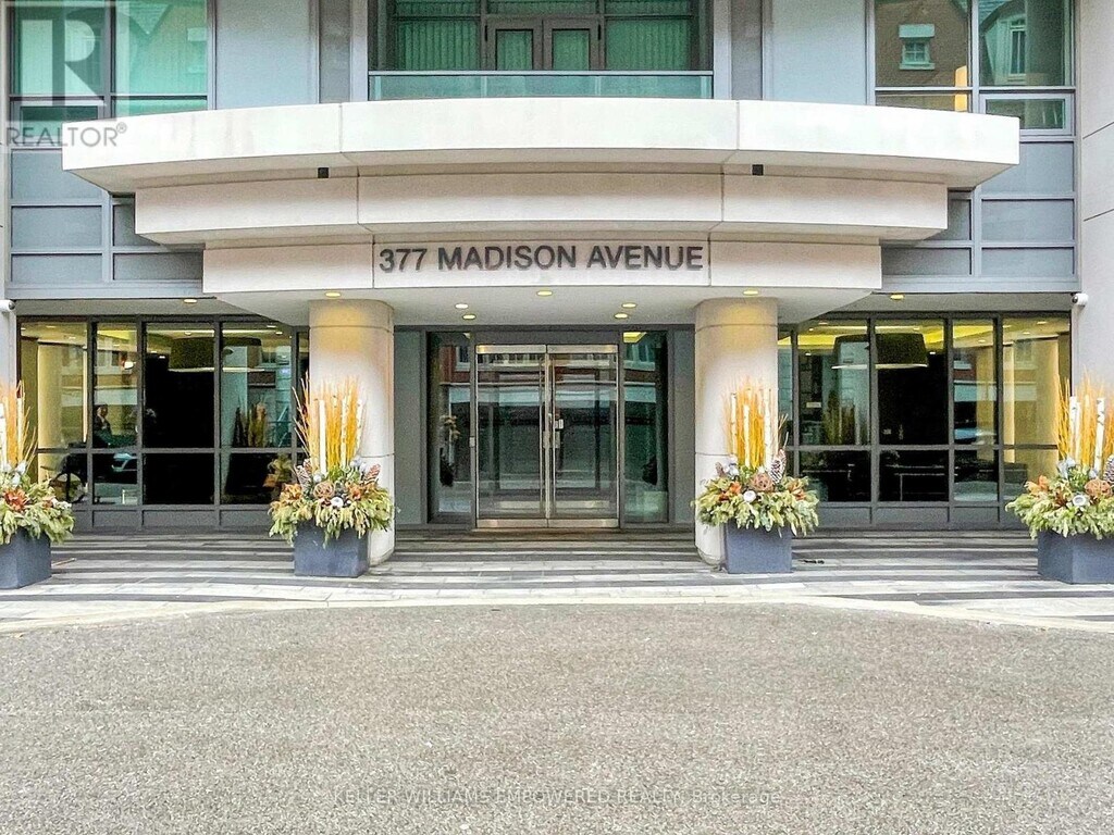 Ideally situated on a quiet,tree-lined street just south of Casa Loma! 377 Madison Ave offers a rare blend of neighbourhood charm and urban convenience. This boutique building is nestled between Forest Hill and The Annex,a two-minute walk to Dupont Station,transit,cafés,and everyday essentials. Enjoy this beautifully appointed west-facing suite,featuring nearly 9' ceilings and laminate hardwood flooring throughout. There's an abundance of natural light flooding the suite and two west-facing balconies perfect for taking in the stunning Casa Loma scenery all year round. The kitchen is finished with quartz countertops,floor-to-ceiling cabinetry for ample storage,and premium Fulgar Milano and Blomberg appliances. A custom built-in banquette anchors the dining area. The primary bedroom includes direct access to one of the balconies,while the den provides an ideal work-from-home space. This suite features an exceptionally rare,extra-large walk-in laundry room with stackable Blomberg washer and dryer and ample storage surrounding. Building amenities include 24-hour concierge,a gym,party room,pet spa,and visitor parking! (id:52069) ID#: 1980407