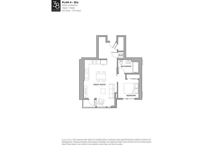 B3 - Floorplan 1 Apartment Unit: 401Apartment Model: B3$4,4911 Bedroom, 1 Bath, 714 sq ftAvailable NowFloorplan B7c