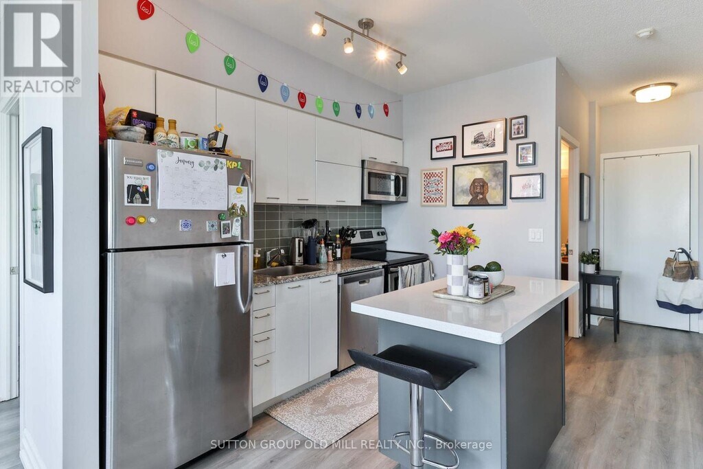 Enjoy penthouse living in this spacious,sun-filled suite with unobstructed northwest views. Featuring high ceilings and a functional open-concept layout,this unit offers seamless living,dining,and kitchen,perfect for both everyday living and entertaining. Walk out from the living area to a private balcony. The modern kitchen is equipped with stainless steel appliances and ample storage. The primary bedroom includes a walk-in closet and a private ensuite,while the second bedroom offers large windows and generous closet space. Convenient in-suite laundry completes the unit. Includes a premium parking spot located right next to the elevator for added ease. Unbeatable location-just a 2-minute walk to transit,groceries,restaurants,Shoppers Drug Mart,Canadian Tire,PetSmart,dog park,Liberty Village,and Queen West. (id:52069) ID#: 2012261
