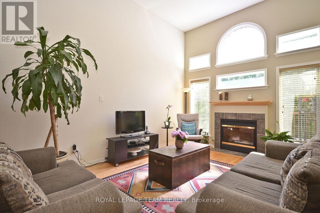 Beautiful street presence,with full brick façade and interlock front walkway of this open concept townhome with two plus bedroom/family room in the finished walk-out lower level. Situated on a quiet circle in Kanata Lakes,backing onto a treed path/park & is walking distance to Kanata Centrum & Signature shops,bus service & in a top school district. Big tiled foyer with double closet & inside entry to garage.Tremendous great room style living room has maple strip hardwood flooring,soaring ceiling height,a magnificent wall of windows for natural light & a gas fireplace with tile surround. Adjoining dining room has the same hardwood flooring & décor as the living room. Marvelous,modern kitchen has tile flooring,maple cabinetry,tile backsplash & an island. 2 bright windows allow natural light to shine into the kitchen. Stainless steel fridge,stove & dishwasher. From the kitchen is a garden door which opens to the deck. Completing the main level is the convenient 2 piece powder room with tile flooring,pedestal sink & tall mirror. Berber carpeted staircase to the 2 bedrooms & full bathroom on the 2nd level. Lovely primary bedroom has neutral décor,berber carpeting,overhead light,2 tall double windows & 2 double closets. Cheater access available to the main bathroom which has a vanity sink,big mirror,medicine cabinet & a tub/shower combined with tile surround. Bedroom two has berber carpeting,overhead light,sunny double window & a double closet. Walk-out lower level family room or bedroom suite for the teen or in-law,has neutral carpeting & décor,overhead lighting & a patio door to the fully fenced backyard. Adjoining office area has a large double window,overhead light & a wet bar area. Full bath has a vanity sink,tall mirror & a combined tub & shower with tile surround. Balance of the lower level has the laundry area with washer & dryer plus storage space. Most photos are from a previous listing. (id:52069) ID#: 1404376
