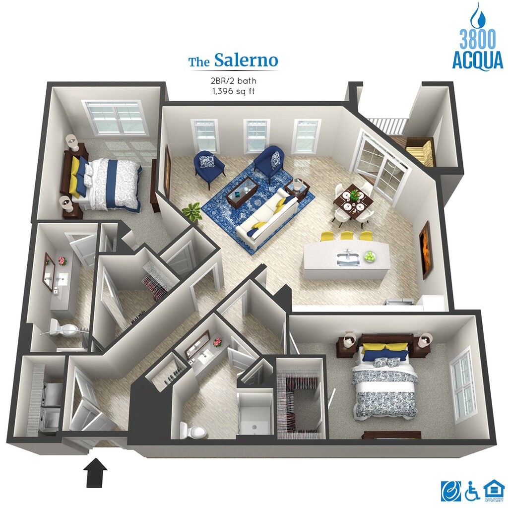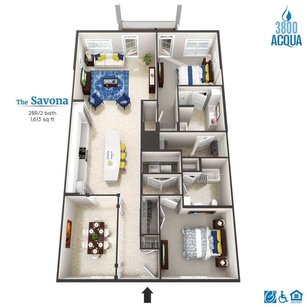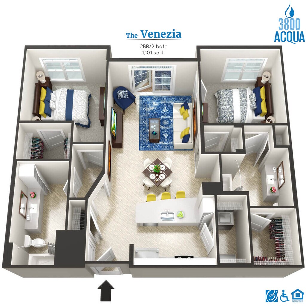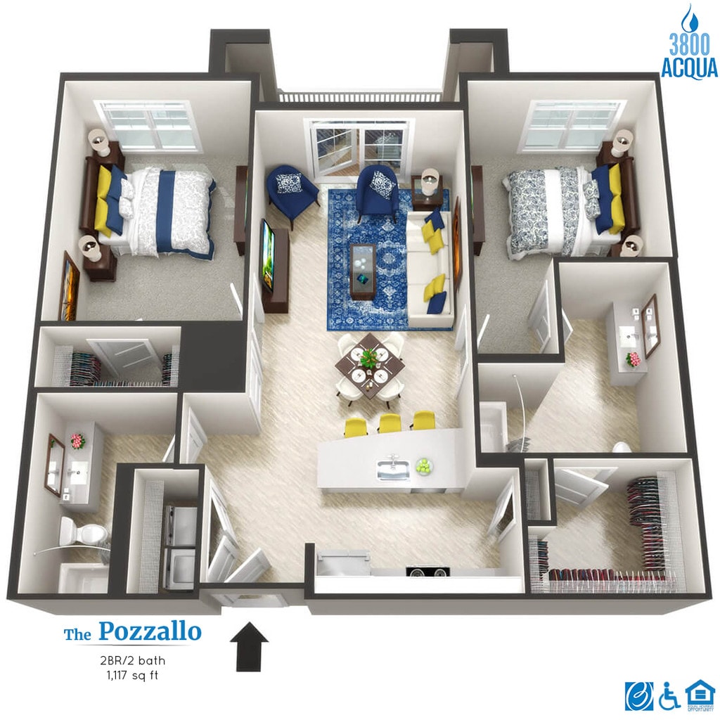 1 Bedroom to 2 Bedroom Apartments at 3800 Acqua at Bridgeport currently range from $1,660 to $2,013