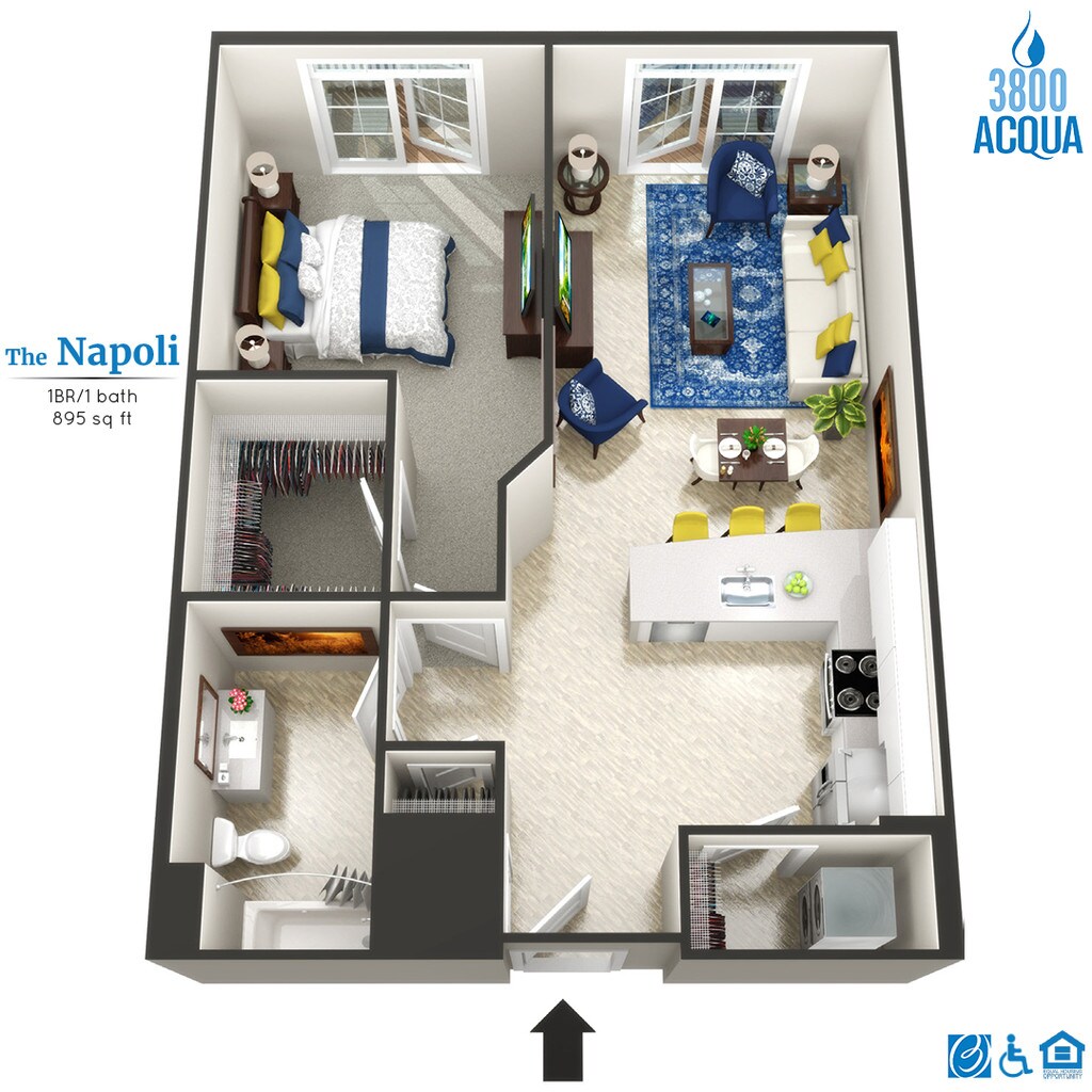 Apartment Model: The Rimini$1,6601 Bedroom, 1 Bath, 777-784 sq ftAvailable Now![]()