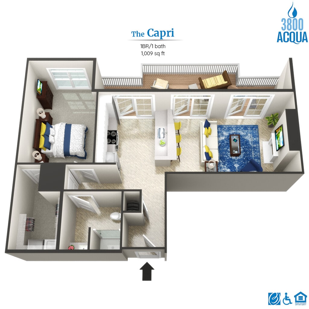 Apartment Model: The CapriFrom $1,9301 Bedroom, 1 Bath, 1009 sq ftAvailable Now![]()
