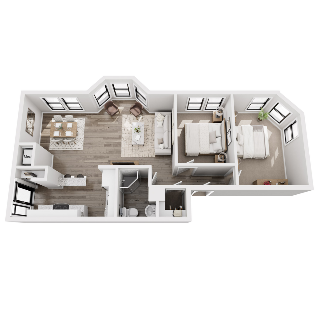 2 Beds, 1 Bath, 715 sq ftModel Gallery