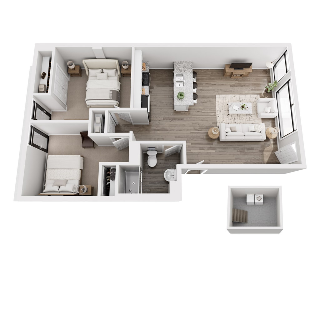 2 Beds, 1 Bath, 750 sq ftModel Gallery