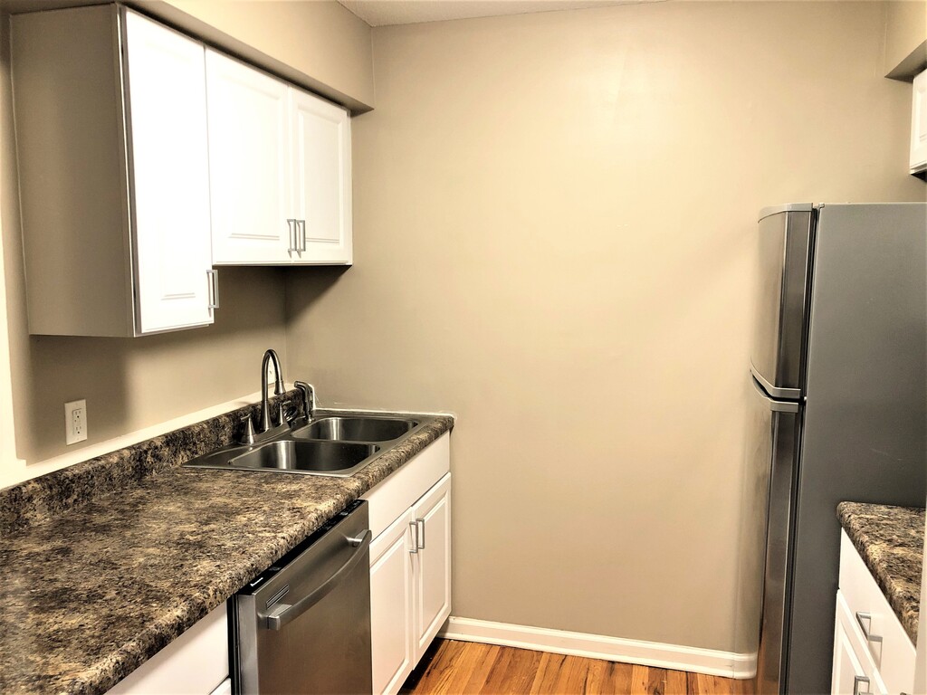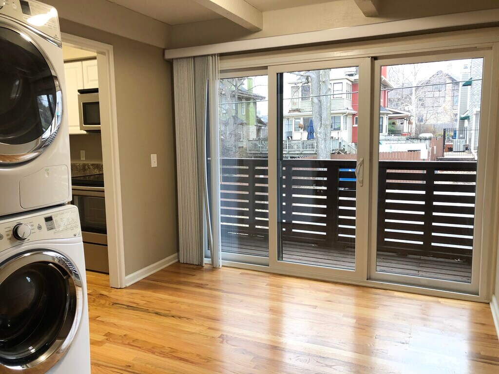 Original hardwood floors and crown molding, windows for natural light, spacious kitchen with upgraded tile and tons of counter space and cabinet space, renovated bathroom. Enjoy a cup of coffee on your patio!
