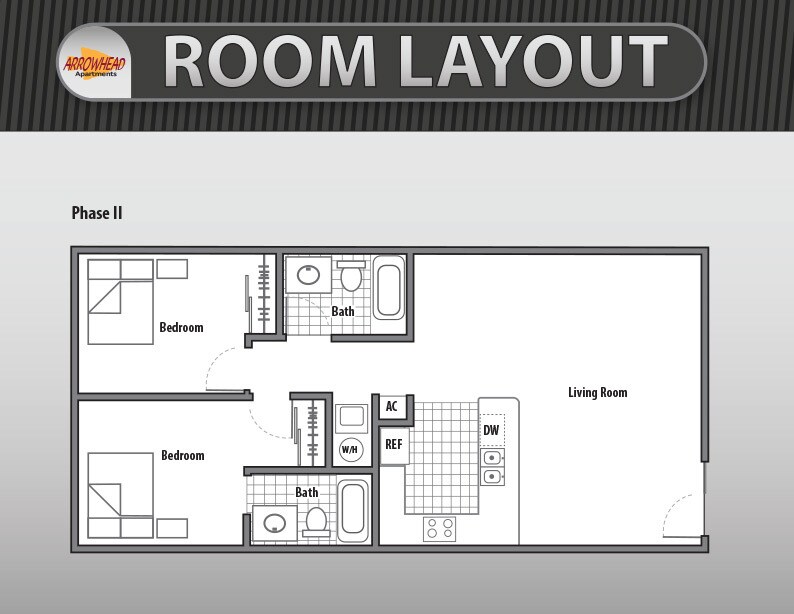 Apartment Model: 2 Bedrooms / 2 Bathrooms2 Bedroom, 2 Bath, 900-1050 sq ftUnavailableFloorplansPhotos![]()