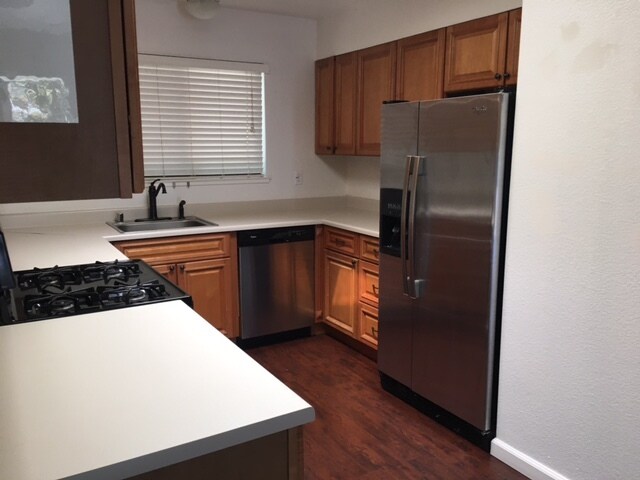 2 bedroom, 2 bath duplex with A/C, refrigerator, stove, dishwasher, washer/dryer hookup in garage. Additional assigned parking space, pet friendly - one dog under 40 lbs or one domestic cat. Please call 707/935-0200 for availability and additional information. Resident pays gas, electric, trash removal; water/sewer included.