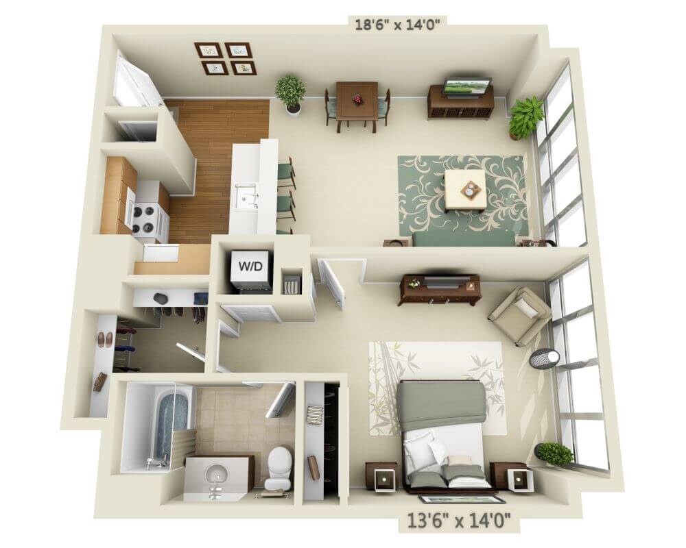 Studio, 1 Bath, 480 sq ftModel Gallery