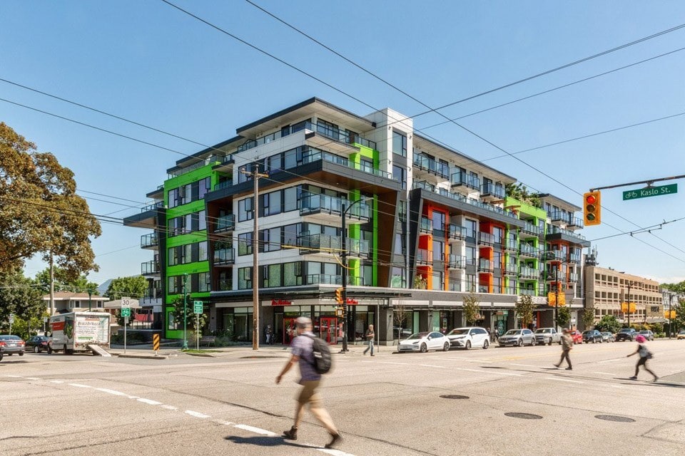 388 Kaslo: Kaslo Street and East Hastings Realstar welcomes you to 388 Kaslo Apartments in East Village offering contemporary rental living in the lively community of Hastings-Sunrise in the East Village. This area is considered a walkers and bikers paradise but also has outstanding public transportation options to get around the city. Enjoy a hip vibrant lifestyle with shops, cafes, restaurants, banks and schools at your doorstep. From the beaches along the ocean to the stunning mountain views, it’s time to love where you live at Kaslo Apartments! Our location 388 Kaslo is located in the vibrant Hastings-Sunrise neighbourhood on the northeast corner of Kaslo Street and East Hastings. This community offers numerous cafe’s, an array of restaurants and other commercial amenities nearby and is steps to the PNE Fairgrounds, Empire Fields and other various parks. Convenient transit and transportation nodes provide access to Downtown Vancouver, SFU in Burnaby, and North Vancouver via the Iron Workers Bridge. Residents of 388 Kaslo enjoy easy access to HWY 1, Downtown Vancouver via multiple bus routes (95 B-Line, #14, #16) and Simon Fraser University (95 B-Line). On-site you will find a Dairy Queen, Tim Hortons and Woodland Physiotherapy. Directly across the street or a short walk away are shops and services including Bosley’s, Starbucks, Shoppers Drug Mart, London Drugs, Oxygen Fitness, Chatime, Tama Organic food store, High Point Beer Wine Spirits, restaurants, banks/credit unions, dental/medical health centre and more. Our suites Choose from stylish and thoughtfully designed 1, 2 & 3 bedroom suites at 388 Kaslo. Each apartment features an open-concept layout that emphasizes ultimate flow and functionality complimented by high-end finishes such as quartz countertops, wood veneer cabinetry, laminate flooring and ceramic tile backsplash. Suites come complete with a 4-piece stainless steel appliance package, in-suite front load laundry, ceramic tub/shower surrounds and private balconies with stunning views – perfect for modern living. Property perks 388 Kaslo offers 100% smoke-free living and a premium selection of first-class amenities to enjoy. The 6th floor features a social room with kitchenette, TV lounge and washroom as well as a landscaped BBQ terrace and outdoor dining area, perfect for enjoying warm sunny days. Head up to the 7th floor to enjoy panoramic view of the North Shre Mountains from the rooftop deck, complete with lounge seating and garden plots. The inner courtyard offers a safe and enjoyable children’s play area with seating. Residents also benefit from secure underground parking, fob-accessed storage lockers, a dedicated bike room with repair station and attentive professional on-site management to ensure your needs are always met.
