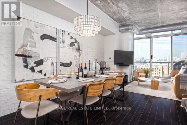 District Lofts. A rare 2-storey,sub-penthouse corner suite offering 1,000 sq ft oflight-filled living with north and south exposures on both levels. Longer,wider,and brighter than comparable units in the building. Recently renovated by local Toronto designers,this 2 bed,2 bath home features exposed brick,10' ceilings,and windows in every room. The thoughtfully designed layout includes a foyer with full wall-to-wall storage,a main-floor powder room,ensuite laundry,and a sleek contemporary kitchen with Sub-Zero fridge. Lighting,paint,and finishes have been fully updated. Enjoy a large corner balcony with north and west views,the best parking spot in the building,a storage locker,and two bike brackets. Located at 388 Richmond,this is a standout opportunity to live in one of Toronto's most iconic loft buildings,refined,functional,andfilled with natural light. (id:52069) ID#: 1988902