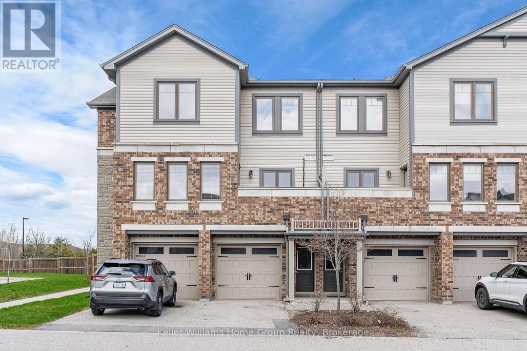 Well-maintained 2-bedroom,3-bathroom stacked condo townhouse in Guelph's desirable South End. Located at 12-39 Kay Crescent,just minutes to Pergola Commons,transit,and a short drive or bus ride to the University of Guelph,with easy access to Highway 401. This home offers a functional open-concept main level with living space and additional dining space that could also be the perfect work area,a practical kitchen,large windows for natural light,a private balcony,and a convenient powder room. Upstairs features a spacious primary bedroom with walk-in closet,a second bedroom,and in-suite laundry. Includes private driveway parking,attached garage with opener and inside entry,and nearby visitor parking. Equipped with water softener and air conditioning. Ideal for students or professionals seeking comfortable,low-maintenance living in a convenient location. (id:63800) ID#: 2256989