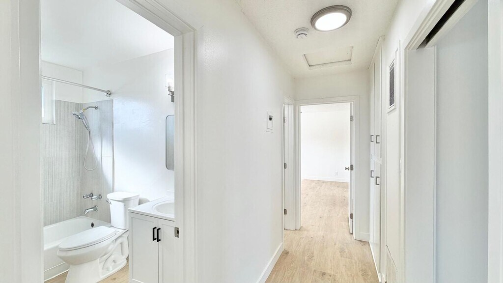 Spacious renovated 2 bedroom, 2 bathroom apartment offering over 1,050 square feet of living space — paired with TWO parking spaces, a rare find in this area. – Includes TWO parking spaces (tandem) – major value in 90008 – Expansive and functional layout with over 1,050 sq ft – Three wall A/C units for efficient cooling – Two full bathrooms – ideal for roommates or shared living – Second floor unit with no neighbors below for added privacy and reduced noise – Freshly painted with brand new wood-style flooring throughout – Updated kitchen with stone countertops and stainless steel appliances (stove/oven, refrigerator, garbage disposal) – Bright living areas with excellent natural light and ceiling fans – Private balcony for outdoor space – Gated entry building with on-site laundry – Online payment and maintenance portal – Pet friendly – Section 8 welcome Located near Baldwin Hills, Leimert Park, and the Crenshaw corridor — with convenient access to Metro lines, shopping, dining, Culver City, Downtown LA, and West LA.